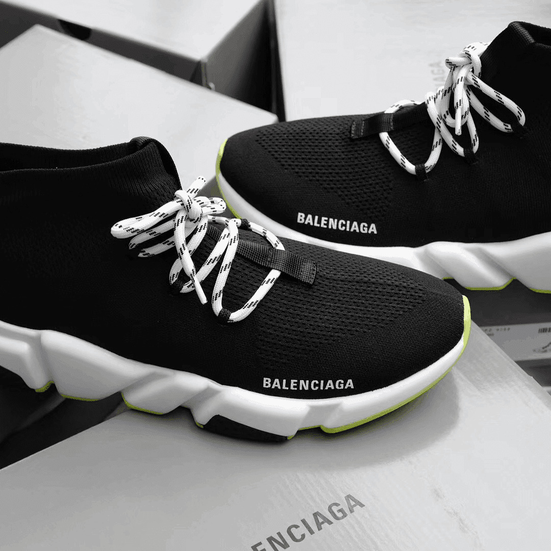 BALENCIAGA SPEED TRAINER LACE UP BLACK WHITE – BB16