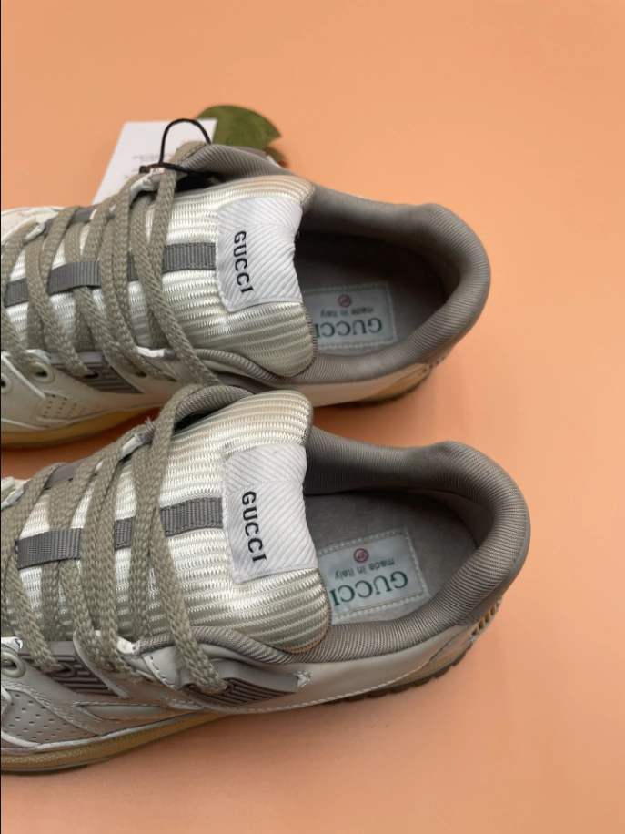 #Gucci #DistressedSneaker #WomensFashion #EdgyStyle #LuxuryFootwear #GucciScript #InterlockingG #Sneaker